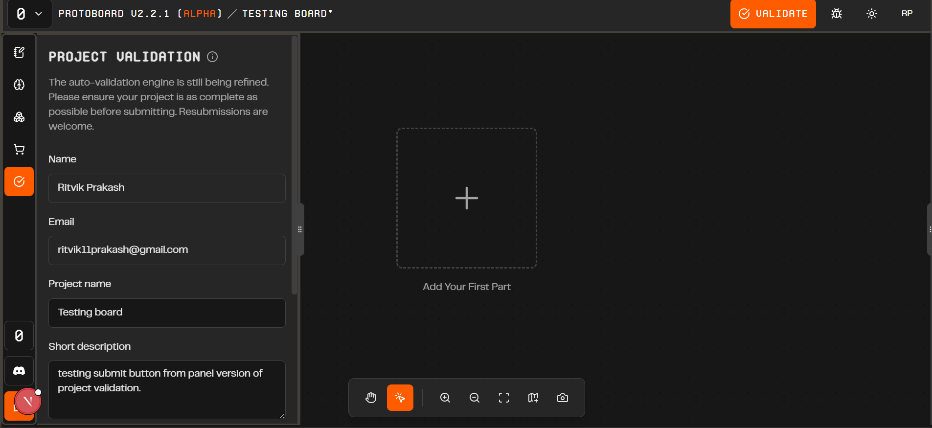 “Add first Part” UI Update: A friendly new button appears when your board is empty, guiding you straight to the Part Bin to add your first component and start building faster.