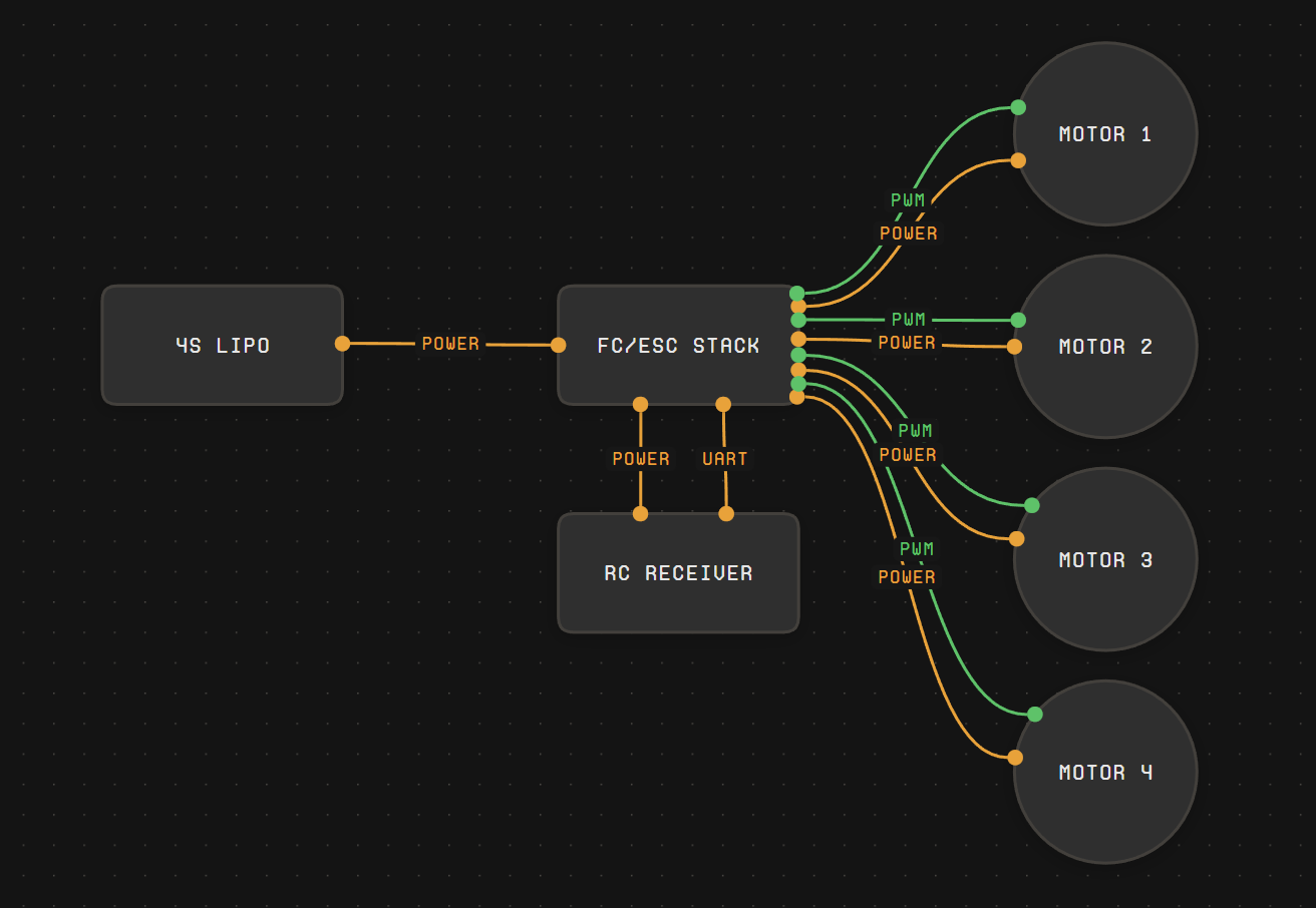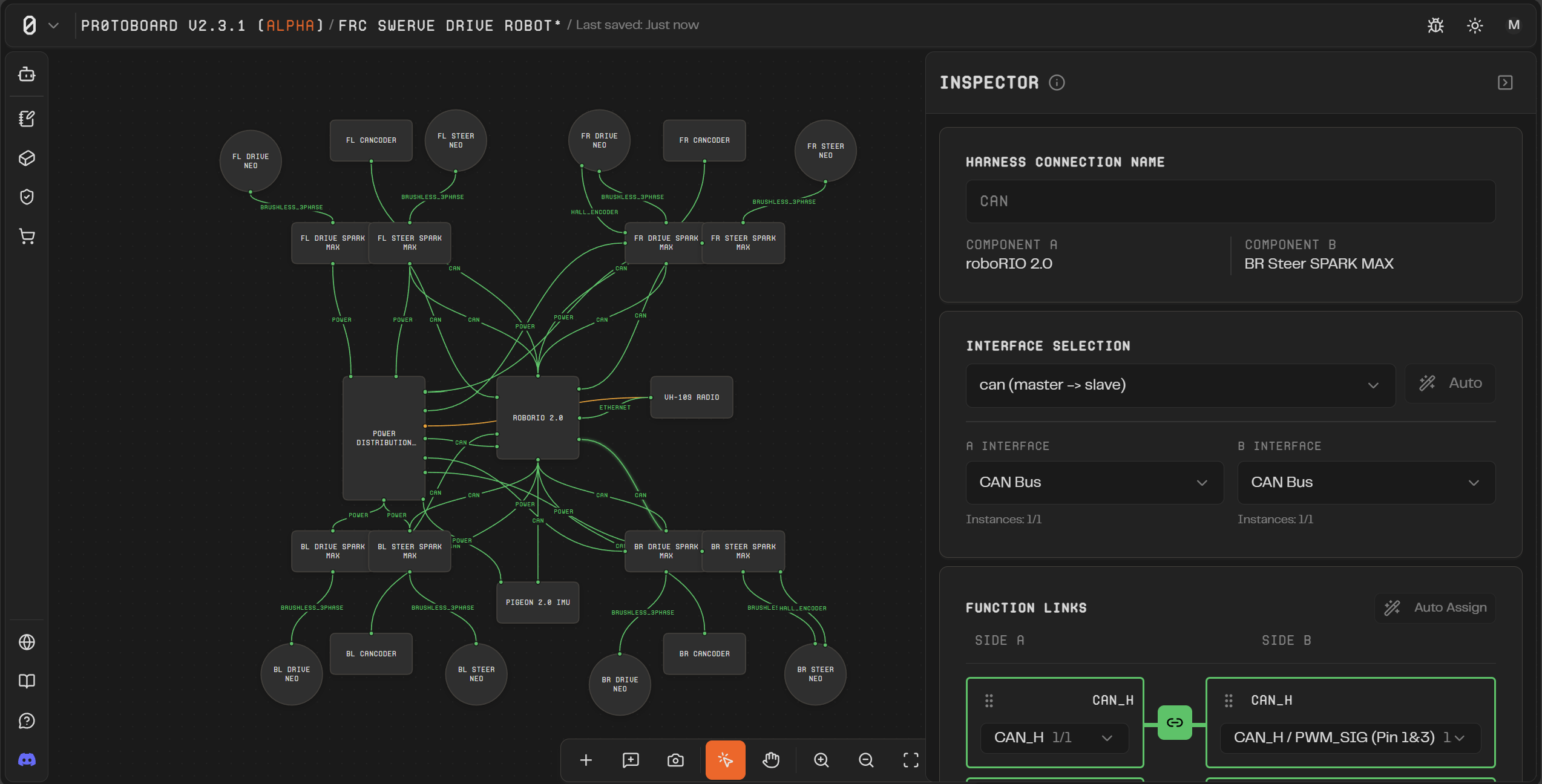 Simplified Harnesses: In previous versions of the app, each line could represent essentially everything about a connection between 2 devices (power, data, mounting, anything)! We have simplified these lines, called “harnesses” to be limited to a single purpose. This purpose can still contain multiple wires (think power being positive and negative) but all the wires are contributing to the same “interface” between parts.